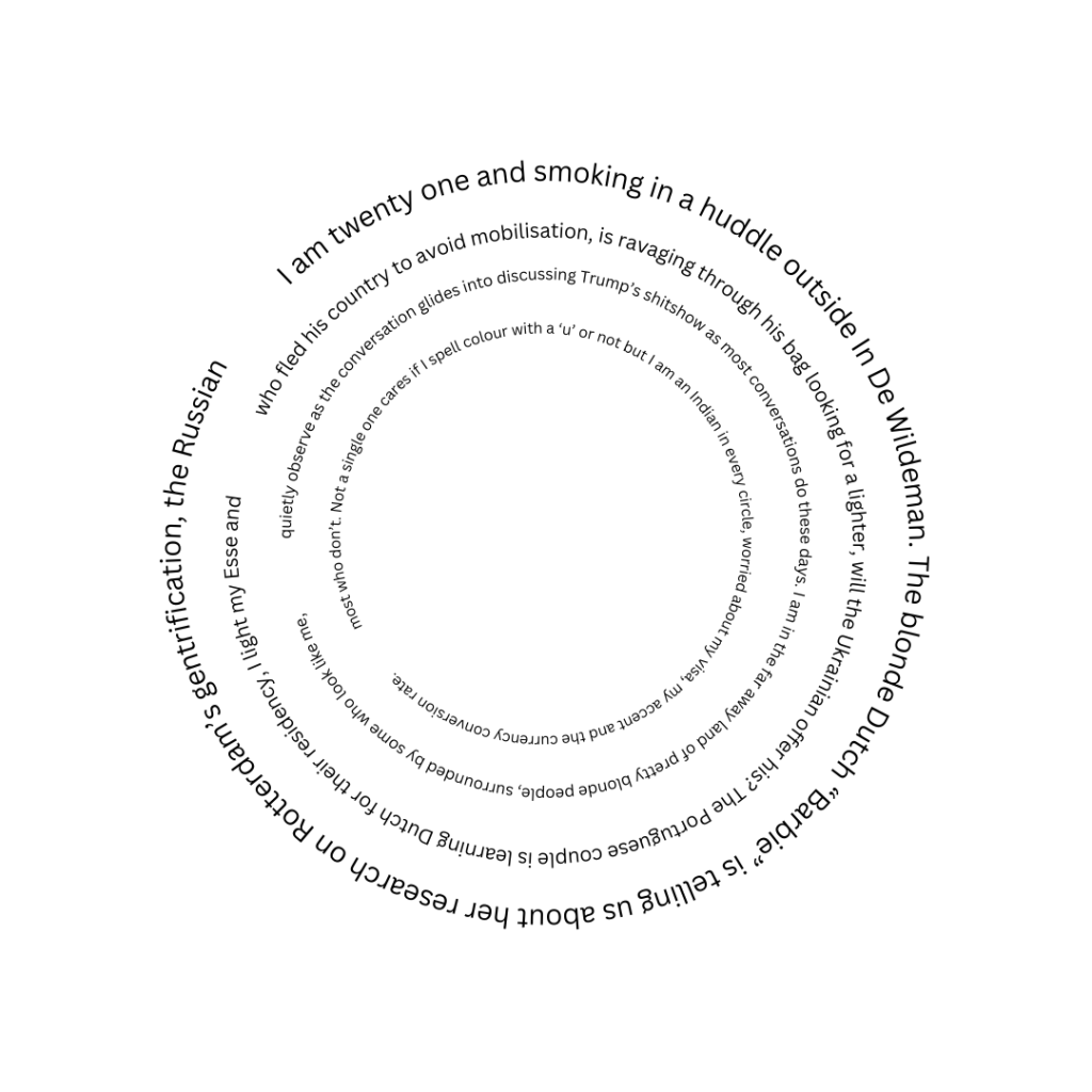 Integrate with the Dutch, hold on to your Indianness, go home to chaos, build a home here in this chaos. Sometimes I am going around in circles, sometimes I am stuck in the epicentre of it.